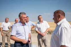 Рабочий день Президента начался в Григориопольском районе. Вадим Красносельский встретился с местным руководством. Обсудили вопросы жизнедеятельности района. Говорили о благоустройстве населенных пунктов – реализованных проектах и планах на перспективу. Глава григориопольской администрации Олег Габужа и Председатель горрайсовета Андрей Ковтун рассказали о новых запросах, поступающих от местных жителей, и о предполагаемых источниках финансирования предстоящих работ. Особое внимание уделили сельскому хозяйству – ведущему сектору экономики района. Площадь григориопольских сельхозугодий превышает 60 тысяч гектаров. В большинстве своем это пашни – 56,5 тысячи гектаров. Многолетними насаждениями занято 1315 га, садами – 840 га, виноградниками – порядка 220 га, орехоплодные высажены на 130 гектарах, ягодники занимают около полутора десятков гектаров, рассказали Президенту. Глава государства спрашивал о раскорчевке изживших себя участков. Только в нынешнем году раскорчевано свыше сотни гектаров неплодоносящих более насаждений, засажено больше трети этой площади. Президенту рассказали, что в агросекторе района сейчас занято больше шести сотен землепользователей: 58 организаций и 549 КФХ. Вадим Красносельский интересовался, есть ли подвижки в развитии овощеводства и плодоводства. В этом направлении на сегодняшний день задействовано 36 хозяйствующих субъектов. Сейчас на полях идет уборка первой группы зерновых. Урожайность пшеницы в целом по району заметно ниже, чем в прошлом году – в среднем 25,4 центнера с гектара. Зато качество зерна выше – 3-4 класс (годом ранее был в основном 5-й и много некондиции), рассказали руководителю страны. Ячменя собирают порядка 39 центнеров с гектара. Сегодняшнее совещание носит выездной характер. Его участники посетили ряд предприятий АПК. Побывали на расположенных в Григориопольском районе полях Тираспольского комбината хлебопродуктов. Там сейчас идет уборка урожая культур первой группы, рассказал начальник Управления сельского хозяйства, природных ресурсов и экологии Григориопольского района Олег Стенгач. В пользовании предприятия почти 20 тысяч гектаров земли, расположенной в Слободзейском, Дубоссарском и Григориопольском районах. Самая большая площадь – 15,5 тысячи гектаров – григориопольские угодья. На них в нынешнем году посеяли почти девять тысяч гектаров озимых – пшеницы, ячменя, ржи, рапса. Яровых – порядка сотни гектаров. Есть также гречиха, горох, кукуруза, сорго, подсолнечник, соя, люцерна. Сейчас убирают горох и озимые. Президенту рассказали, что сельскохозяйственные культуры выращивают не только в качестве сырья для работы комбината, но и на продажу. Направление экспорта – по запросу зарубежных партнеров. Что касается Тираспольского КХП, то он пользуется в основном сырьем, выращенным на собственных полях. Исключение – неурожайные годы. Каким будет 2022-й, говорить рано, но есть опасения, что урожай соберут небольшой. Причина – отсутствие осадков. В этой связи Вадим Красносельский спрашивал о вовлеченности сельхозугодий предприятия в мелиоративный комплекс. Пока орошается 4,7 тысячи гектаров земли. Есть намерение расширить поливную площадь. Вадим Красносельский отметил, что концепция взаимодействия государства и бизнеса в этом направлении сохраняется: за счет бюджетных сре
