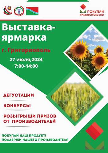 27 июля в городе Григориополь состоится выставка — ярмарка «Покупай приднестровское!»